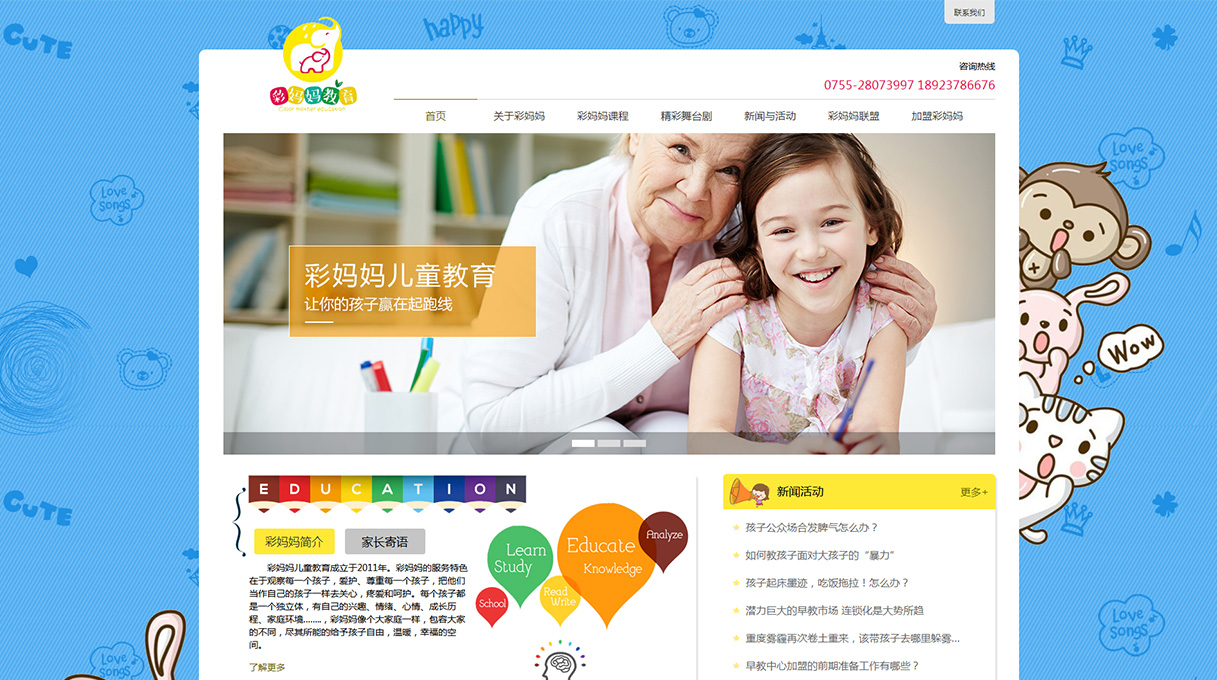 彩媽媽兒童教育成立于2011年。彩媽媽的服務(wù)特色在于觀察每一個(gè)孩子,愛護(hù)、尊重每一個(gè)孩子,把他們當(dāng)作自己的孩子一樣去關(guān)心,疼愛和呵護(hù)。